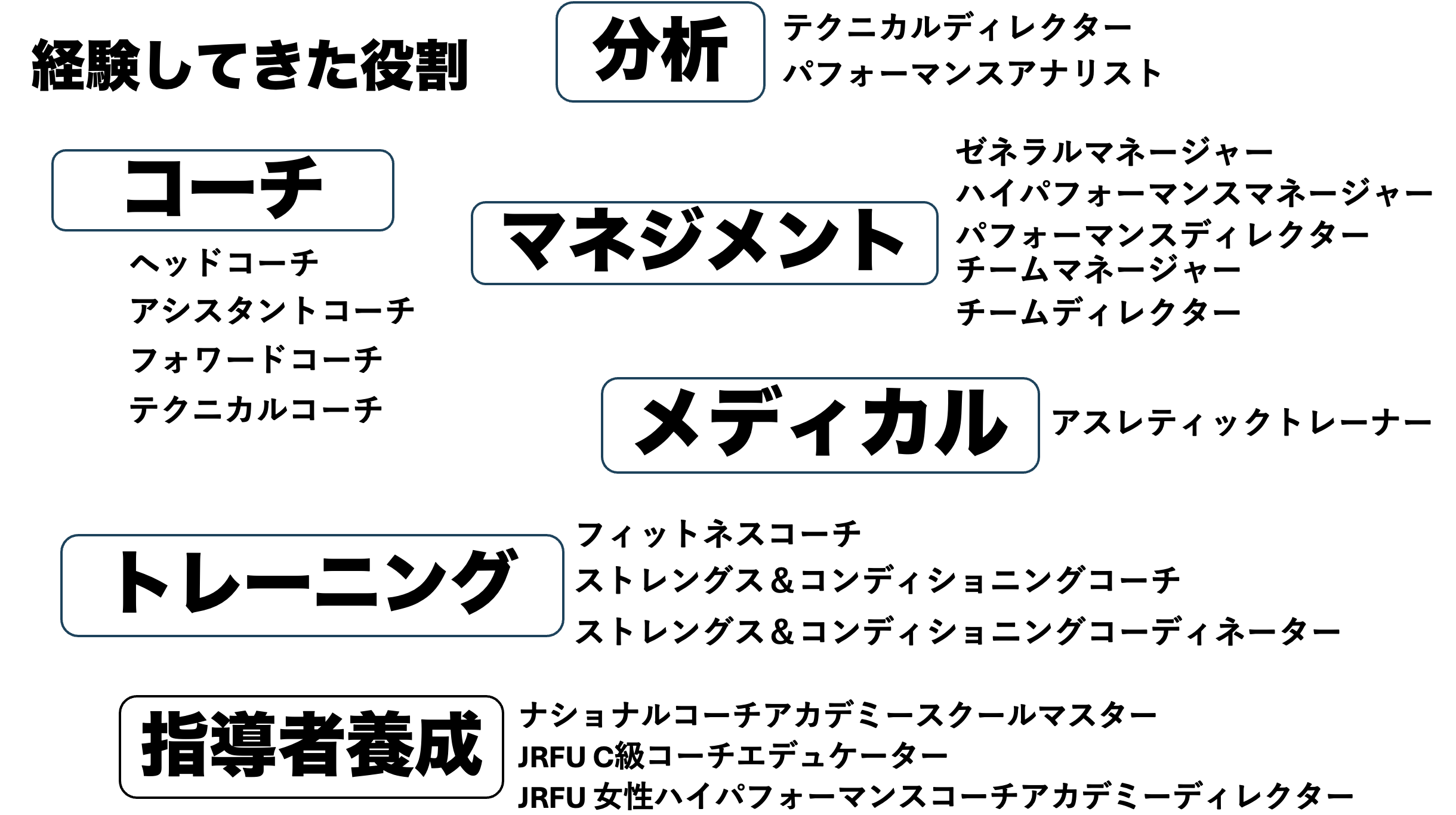 コーチ、分析、メディカル、トレーニング、指導者養成——。