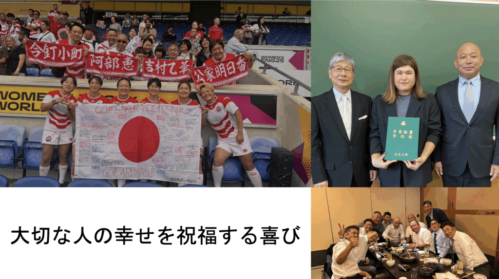 最近、私は「大切な人の幸せを祝福する」という出来事に立て続けに立ち会う機会をいただきました。イングランドで開催された女子ワールドカップの観戦、大学の卒業式、そして恩師の定年をお祝いする会。いずれも形は異なりますが、「祝福する」という共通... -